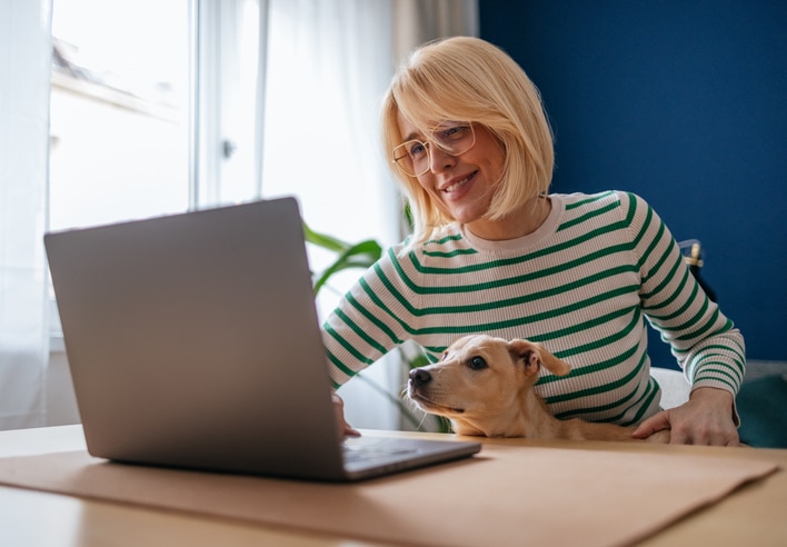 Woman Working From Home While Being Distracted By Her Puppy